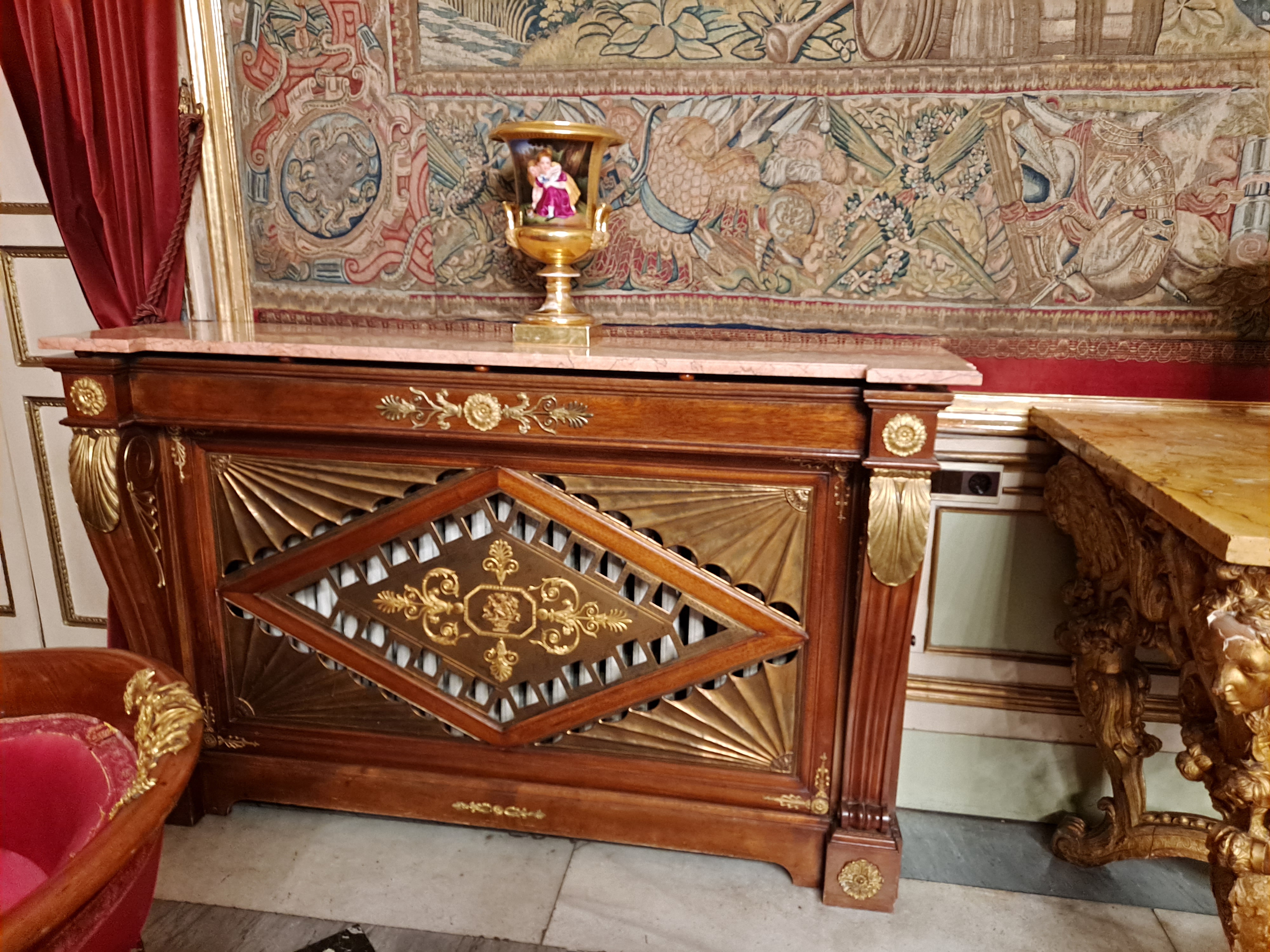 Con la ornamentación en bronce bañada en oro en muchas ocasiones.