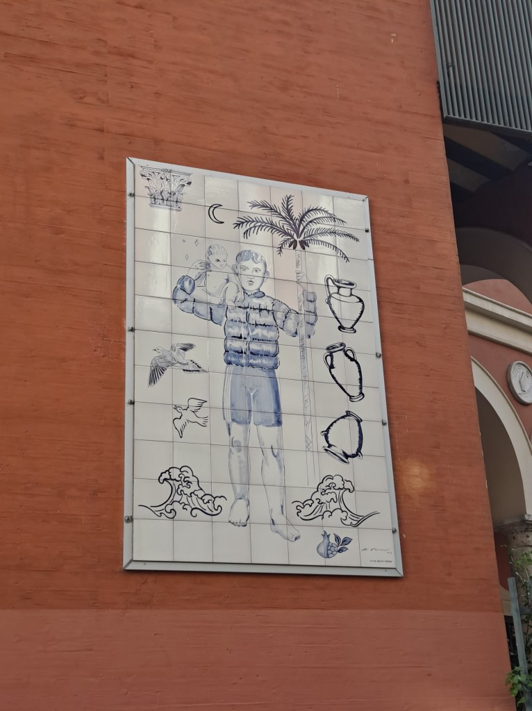 Llegamos primero a una especie de colegio, que se está restaurando, y justo por la zona de detrás, que era una iglesia, vimos una exposición.