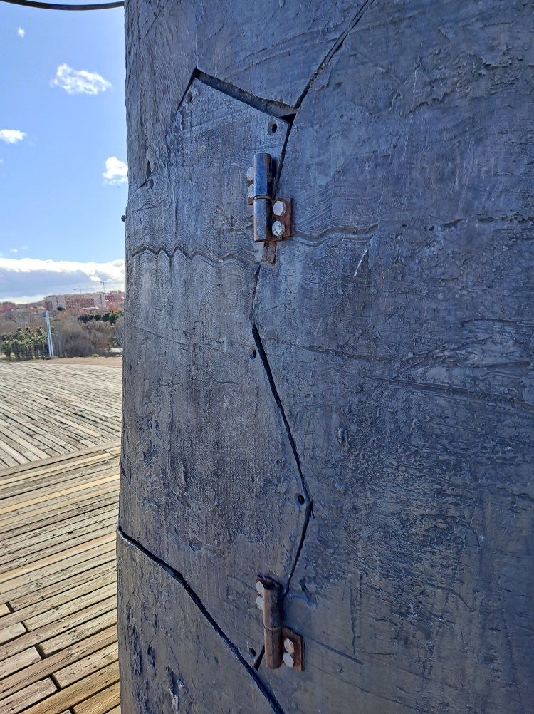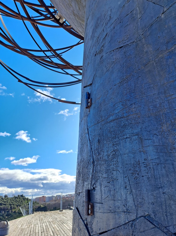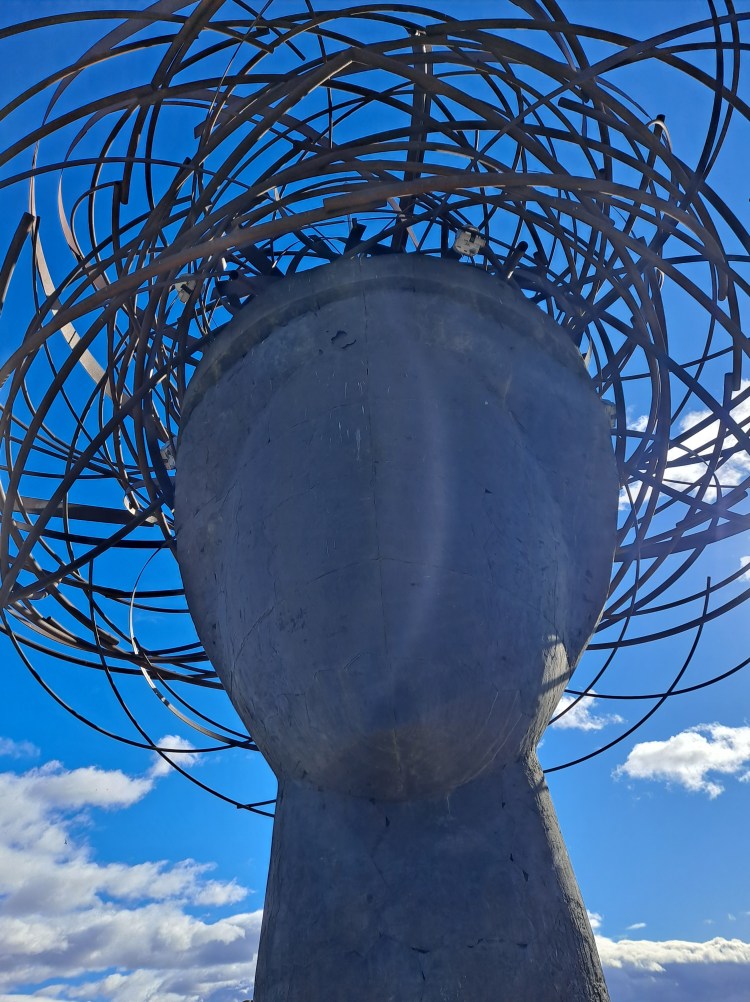 La cabeza fue fundida en el 2003 en acero y bronce y pesa 8 toneladas. Es obra de Manolo Vadés y está dedicada al río Manzanares.