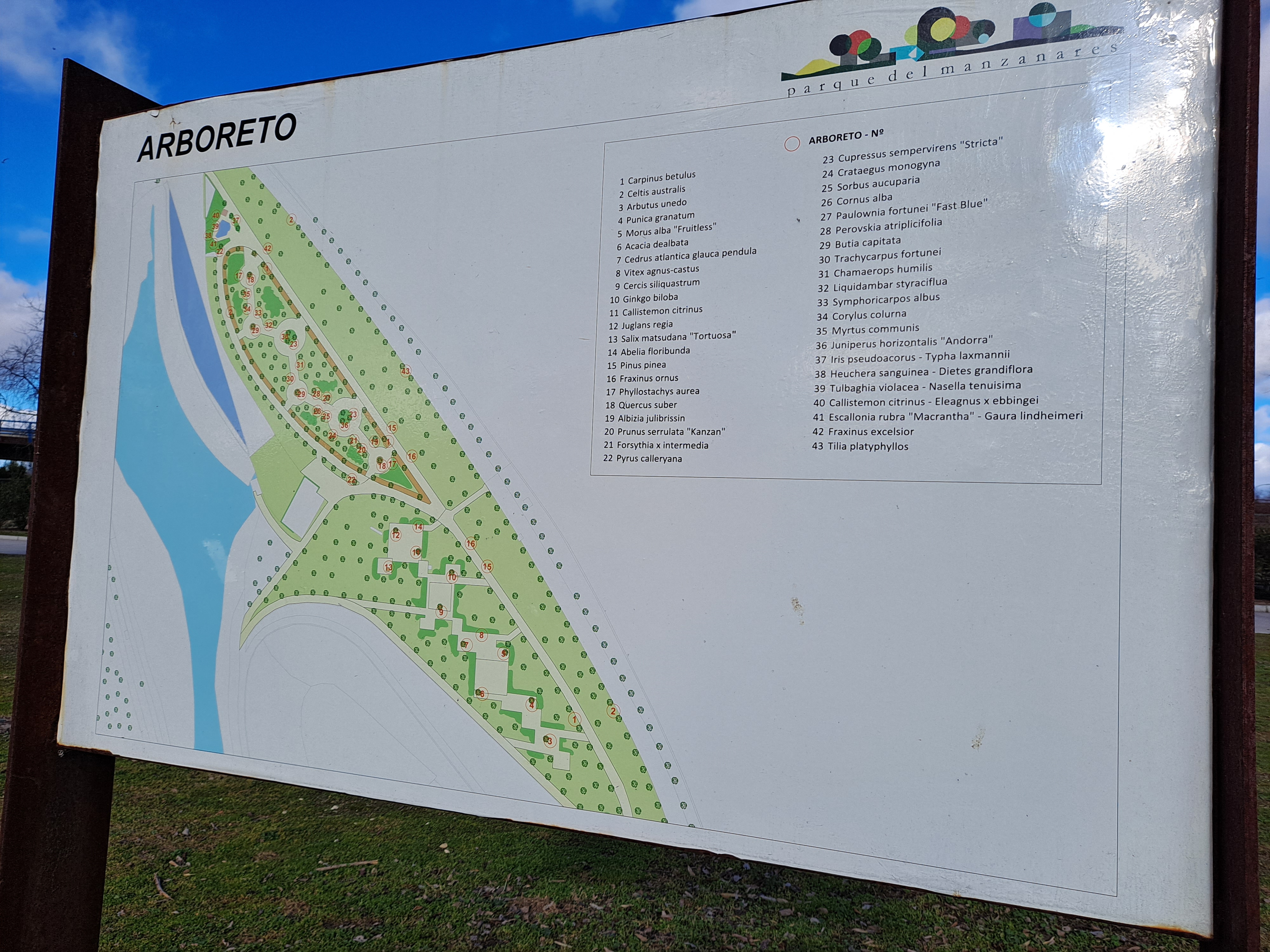 El parque aprovecha el curso del río para crear una zona verde única. Alberga la Dama del Manzanares.