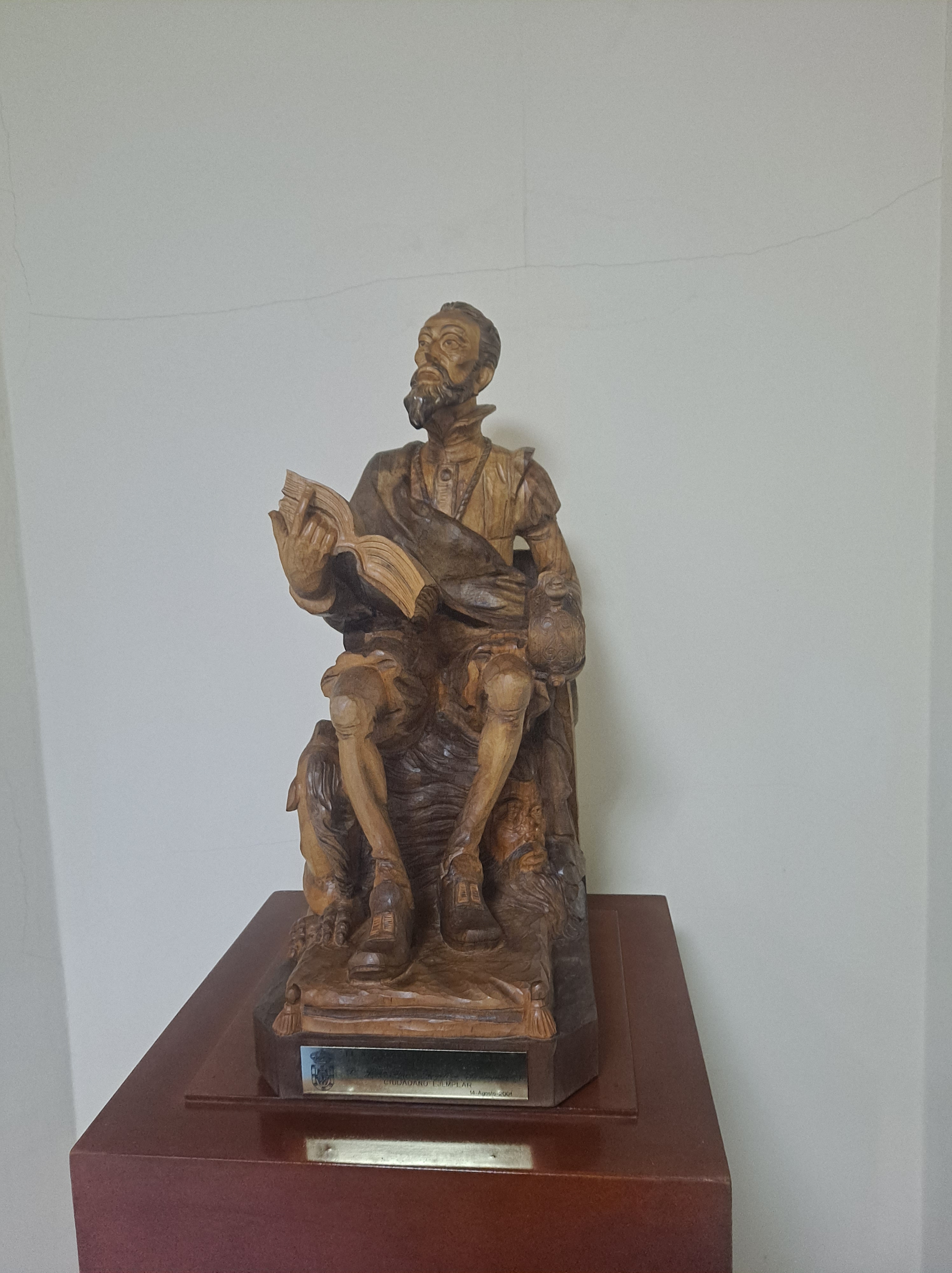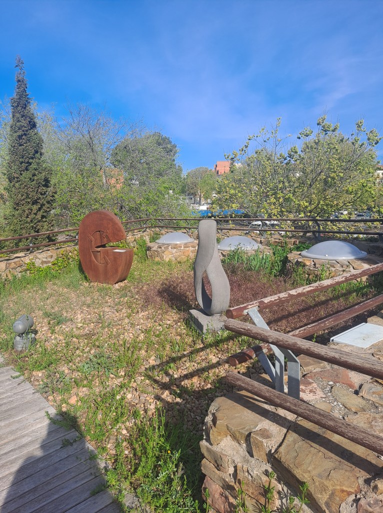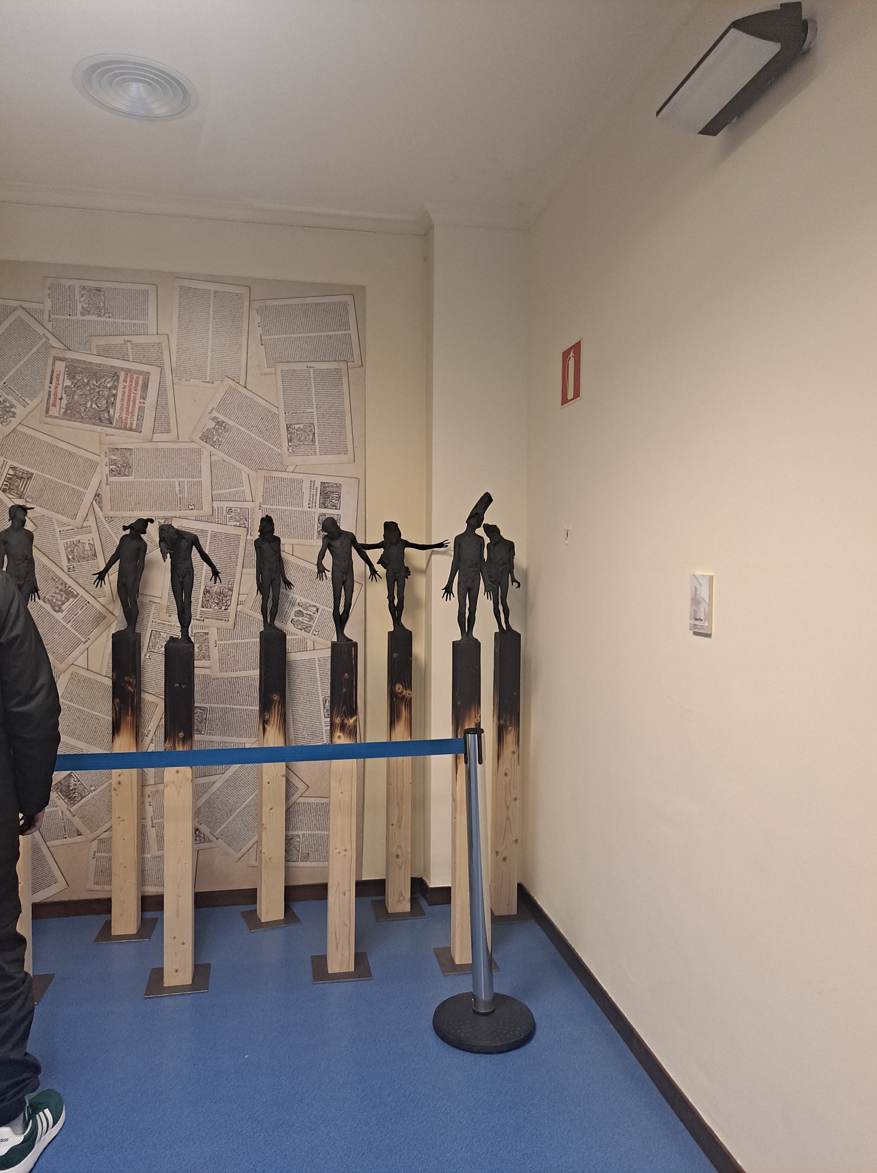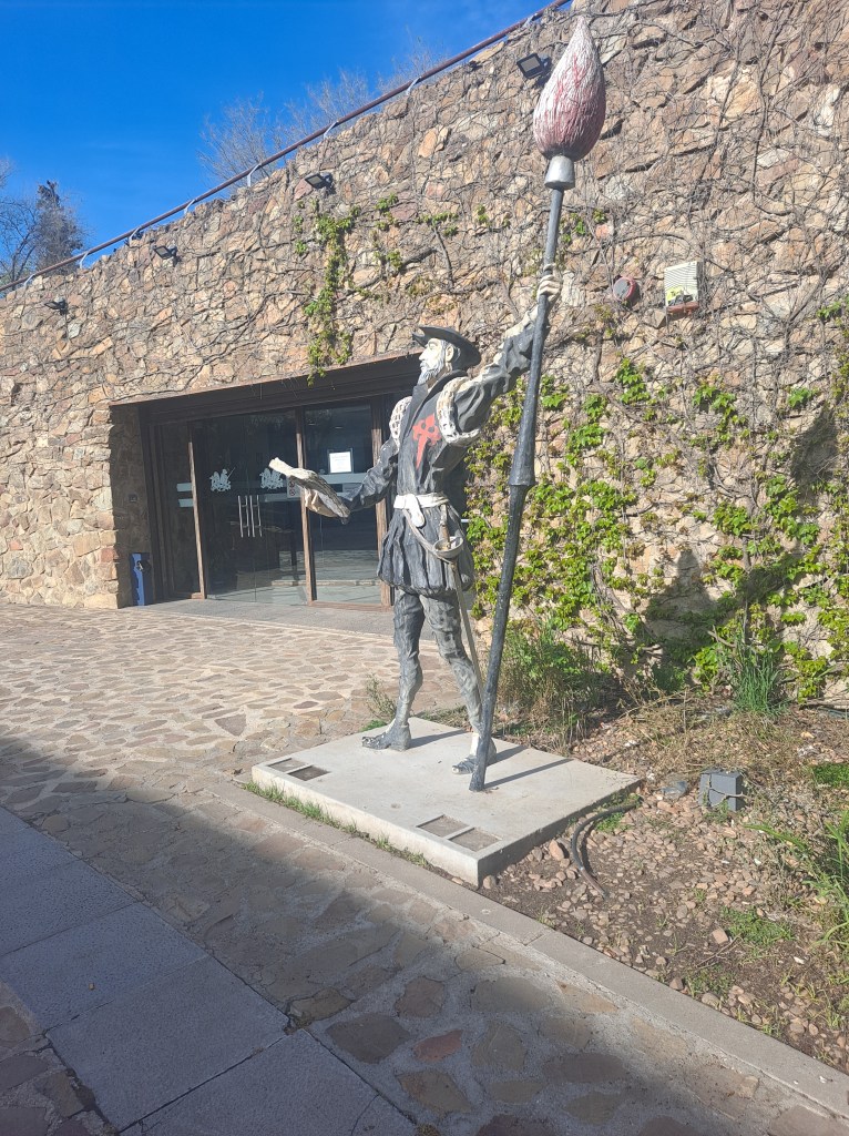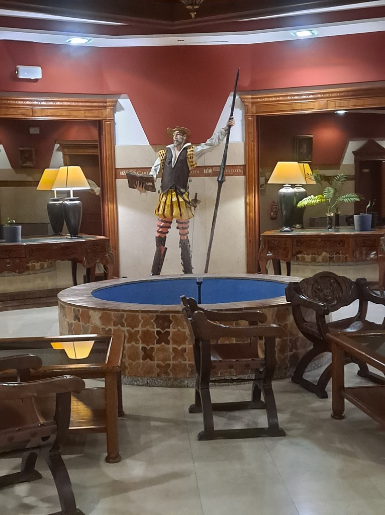 Luego hay una sala para sentarse que ponen un decorado en el suelo de arena y libros, y estanterías llenas de libros en las paredes, y una proyección en audio de un resumen del Quijote.