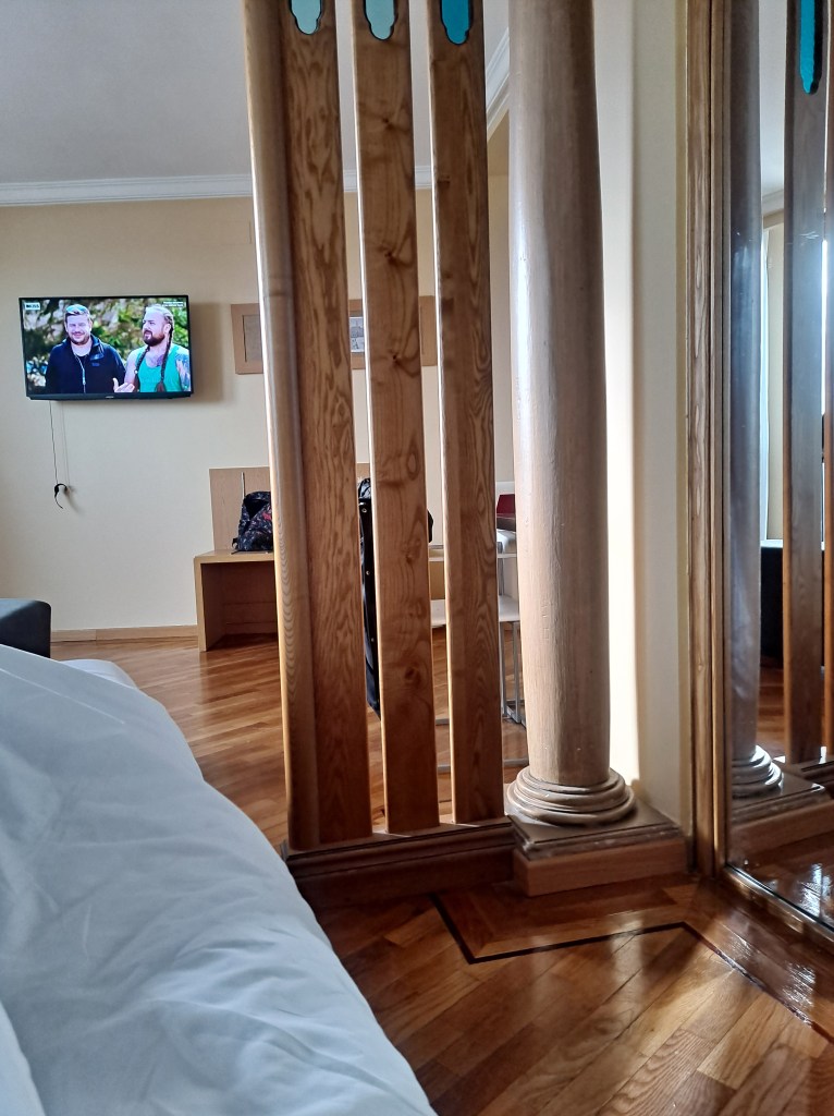 Tiempo agradable, sol, y por momentos calor. Hotel bueno, de tres estrellas tirando a dos pero no en el mal sentido.