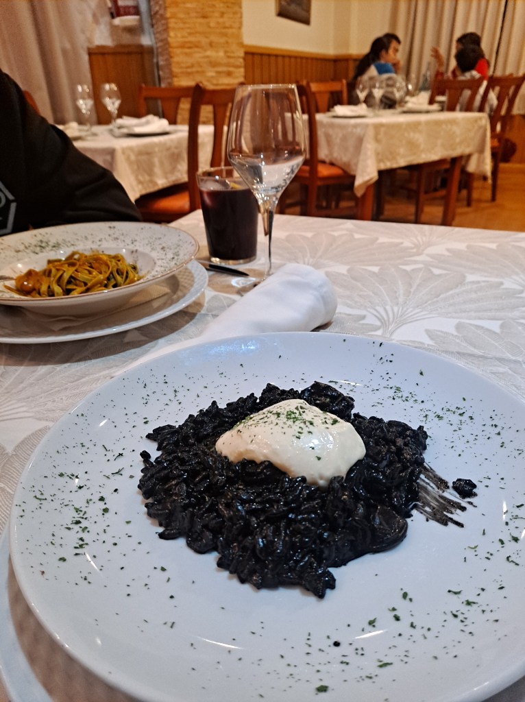 Después fuimos a cenar a un italiano, arroz con tinta de calamar, y a tomar unas copas, en un medio puff.