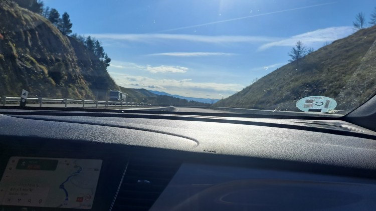 Cada dos horas realizamos una parada para estirar las piernas, pasé por primera vez por el desierto de Monegros del que tanto había oído hablar de adolescente por sus raves y festivales.
