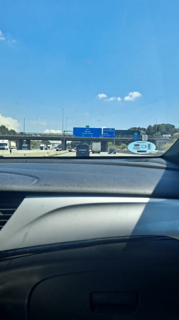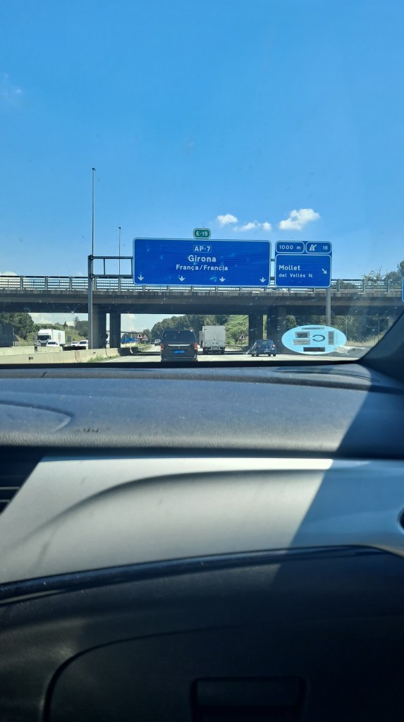 Vimos varios coches a los que habían parado y estaban registrando, teníamos preparados nuestros DNIs. Pasamos obviamente por Le Boulou…, que era uno de los lugares a los que quisimos ir. Y ya se notaba que estábamos fuera, por su mezcla de catalán, francés y español.
