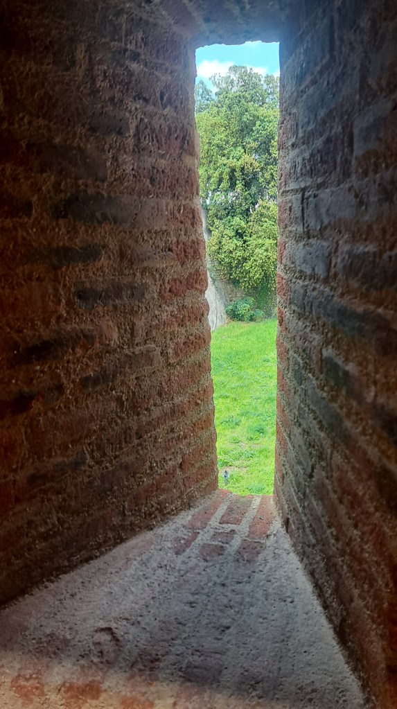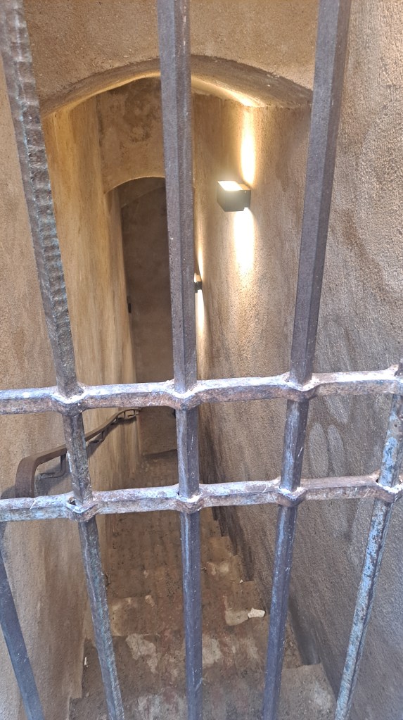 Pero ya desde ahí viendo las zonas medio escondidas nos imaginábamos que eso eran calabozos. De la cuesta y de las escaleras, varias de varios tipos, que vimos por ahí, algunas escondidas solo podíamos pensar en que lo construyeron así para ponérselo más difícil al enemigo si llegaba hasta ahí y que se cansaran más los soldados.