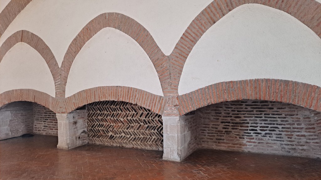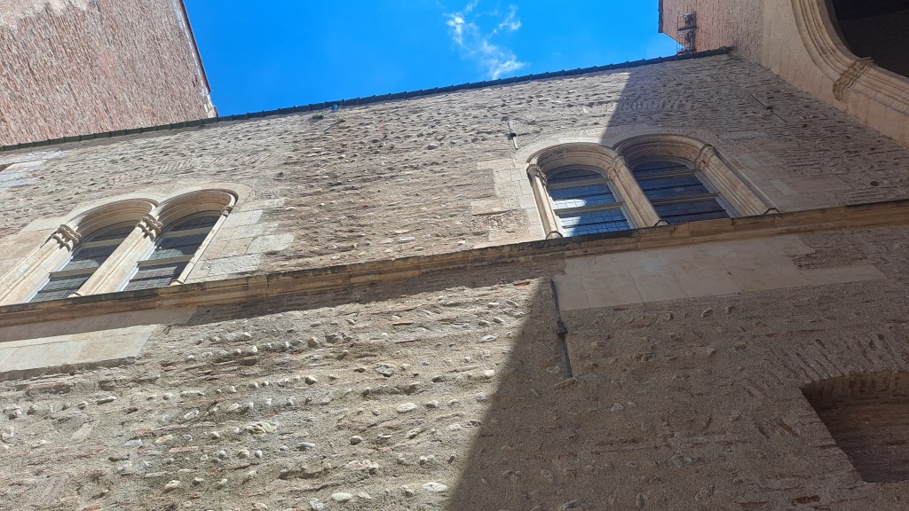 Más que un palacio parece una fortaleza, con sus gruesos muros alisados de ladrillos y su suelo empedrado.