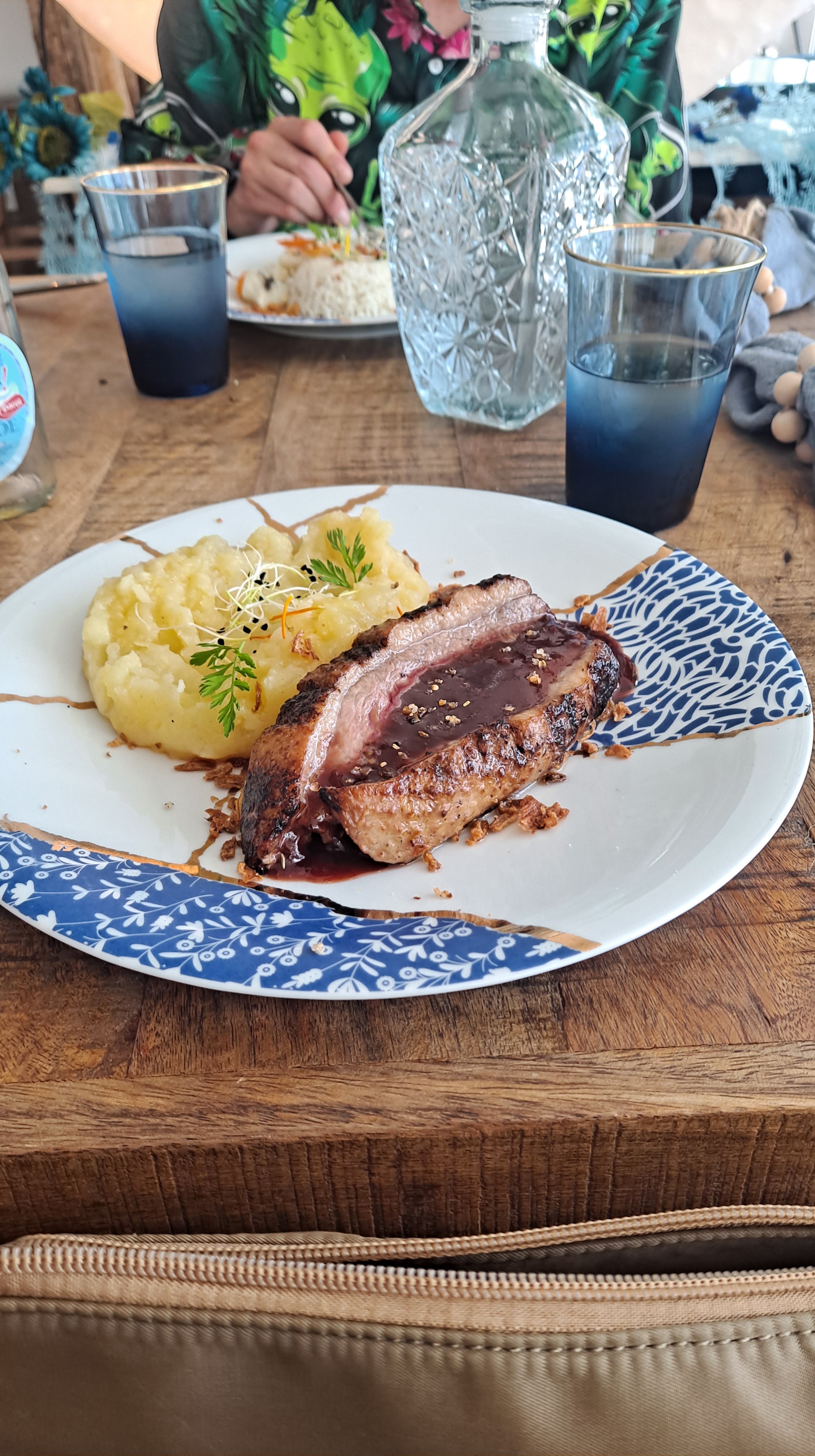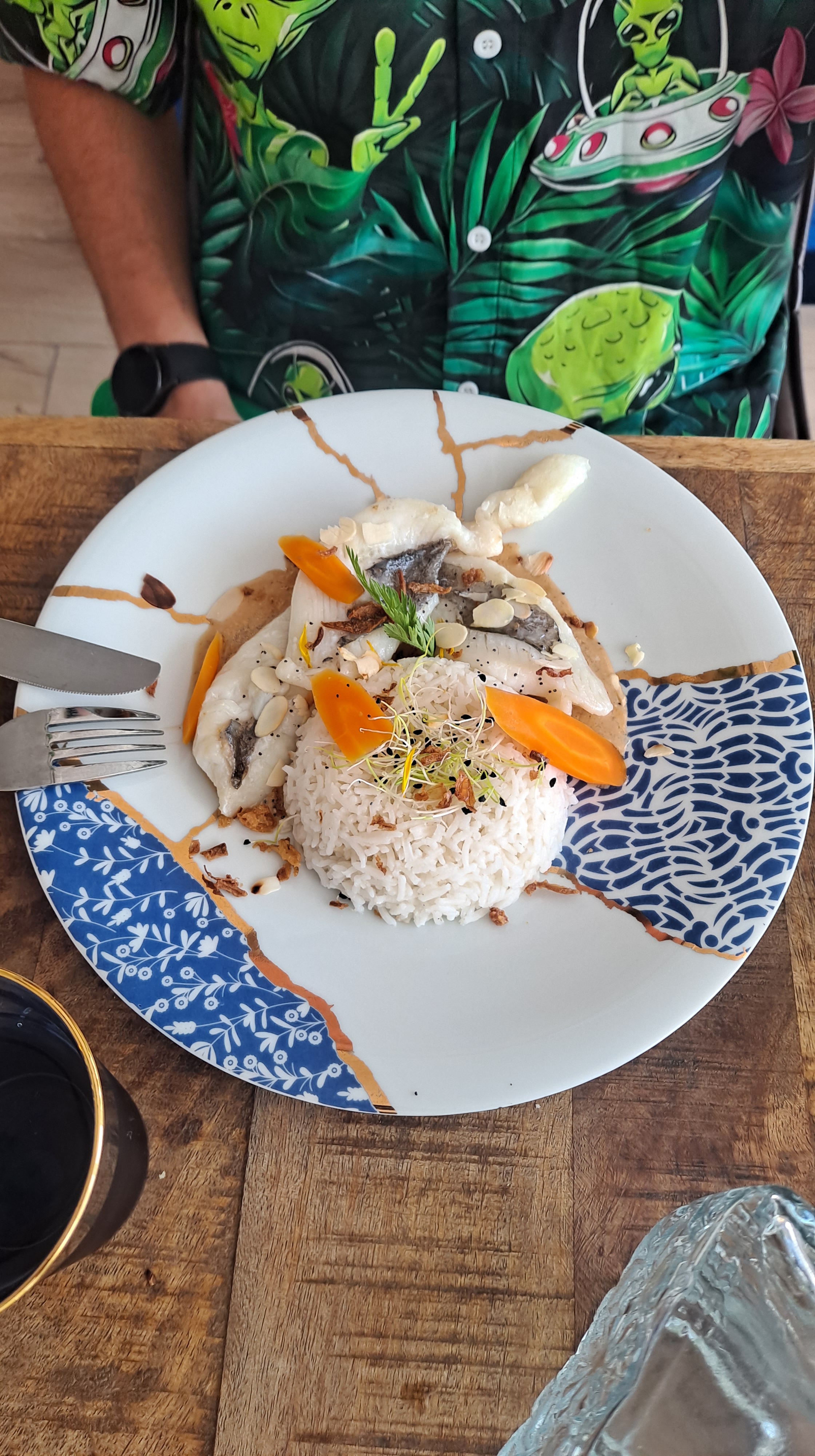 Bajamos despacito a la civilización y comimos en un restaurante cuco, pequeño pero barato, limpio, rico, y la señora muy simpática, Ecuatofrancesa, donde además de comer divinamente pudimos cargar un poco los móviles.