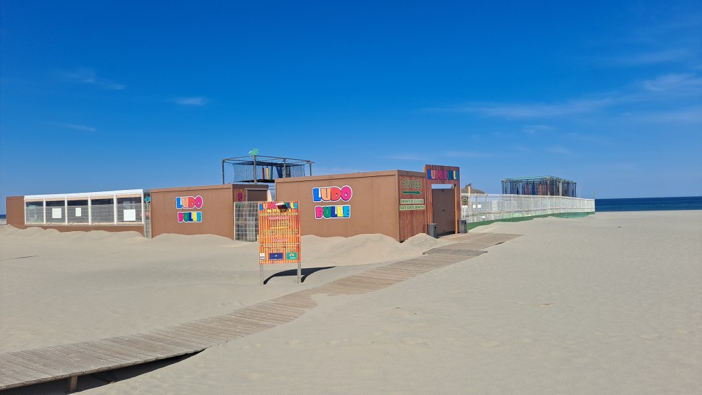 Ludotecas grandes con juegos externos en la misma playa; un parking privado en la misma playa tb.