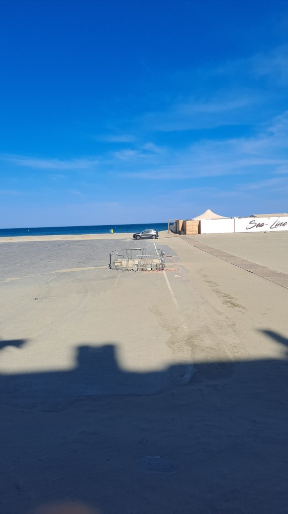 Baobab, un chiringuito cerrado, con su decoración, Pajote del Mar, otro chiringo, que así lo bauticé por su semejanza acustica, y un mar lleno de margaritas.