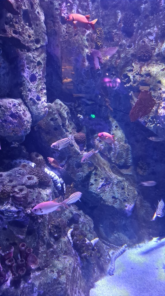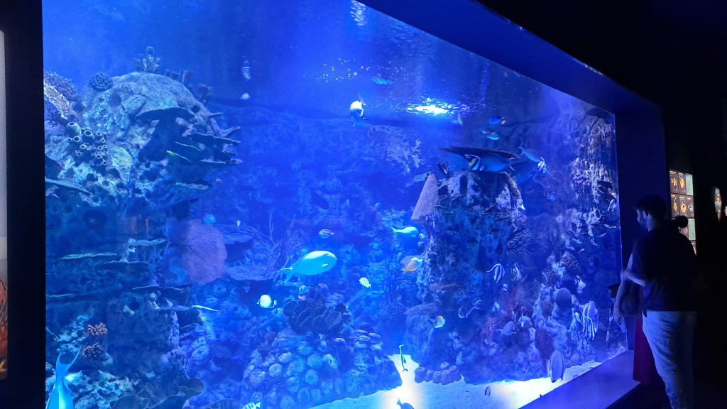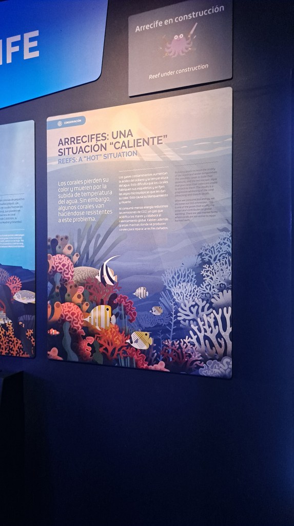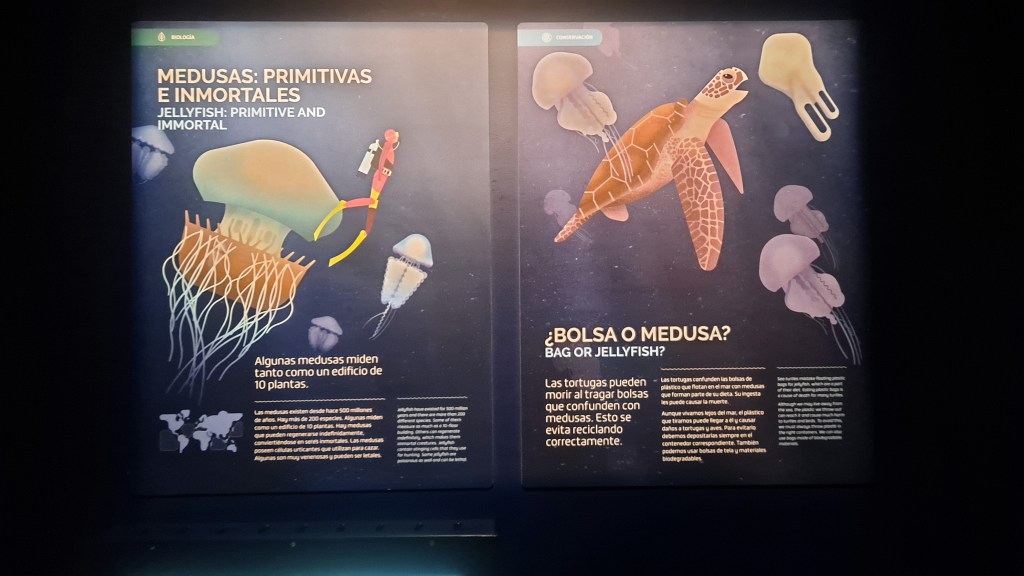 Y también hay realidad virtual aumentada, hay un espectáculo nocturno de durmiendo con tiburones, en el recorrido hay como actividades para estudiantes de secundaria, y de bachillerato, y está todo adaptado para personas con necesidades especiales.Y encima se pueden celebrar cumpleaños.