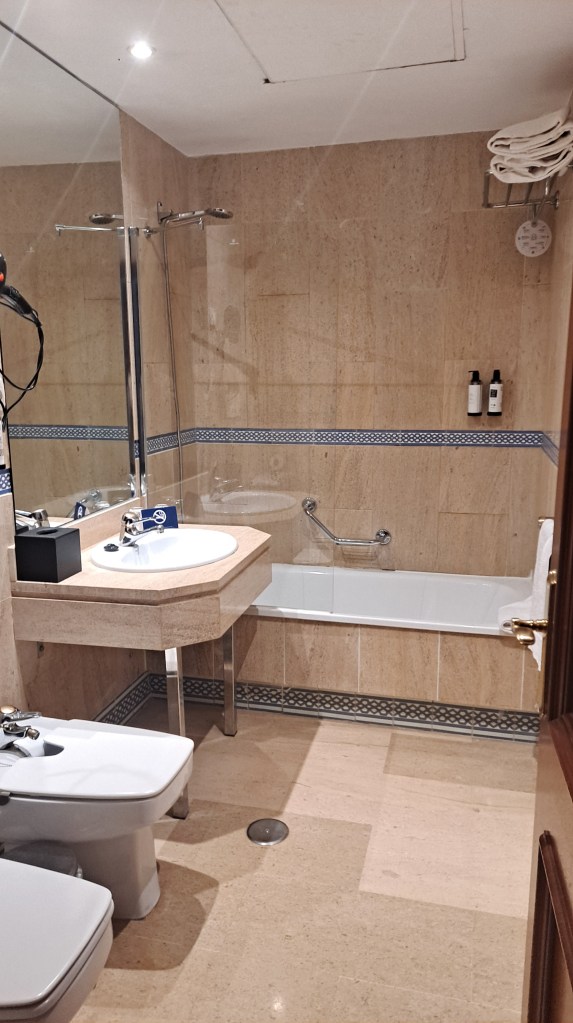 La recepción muy bonica, una entrada grande, clara, luminosa y decorada para la navidad, la recepcionista fue muy amable, muy maja, Valentina simpática, nos ha dicho las actividades sociales de las festividades de ese día, y de paso nos comentó que en el centro empezaban las festividades y había pasacalles y ferias, por las calles principales por si queríamos ir.