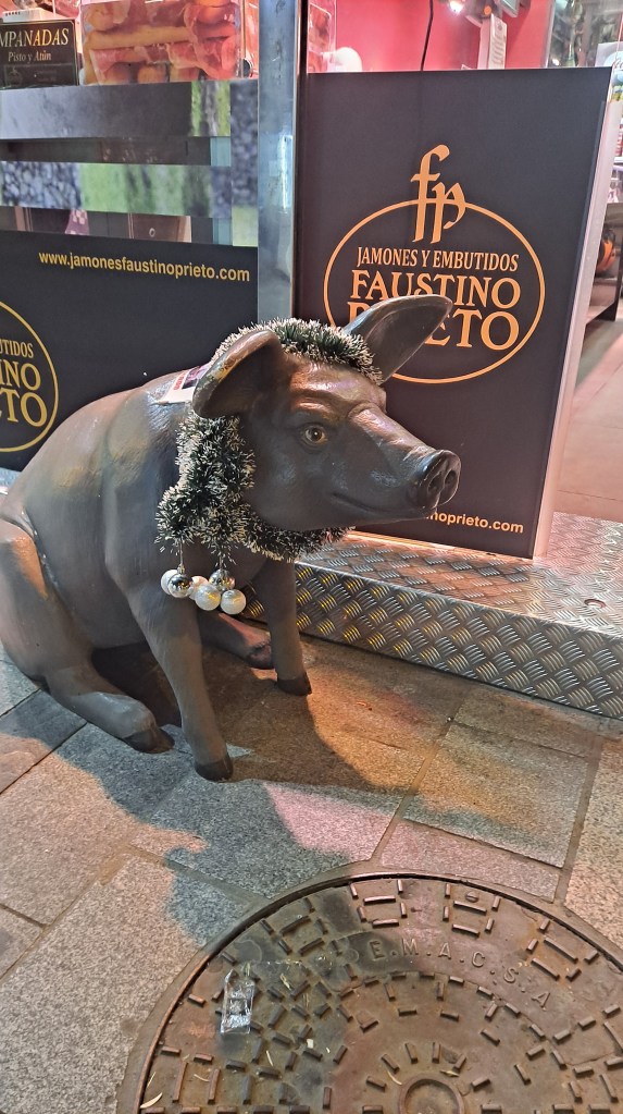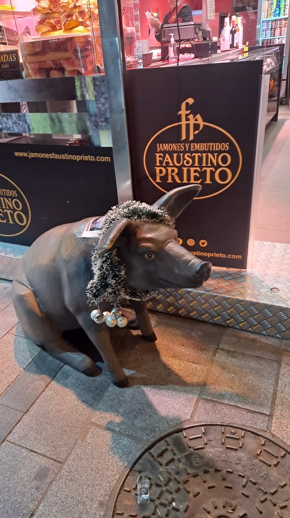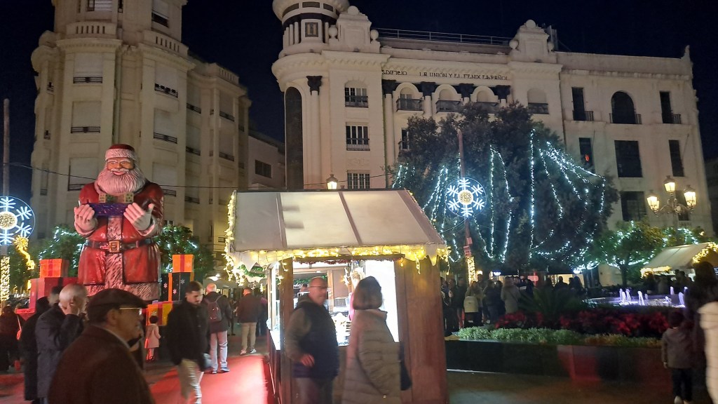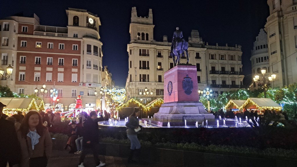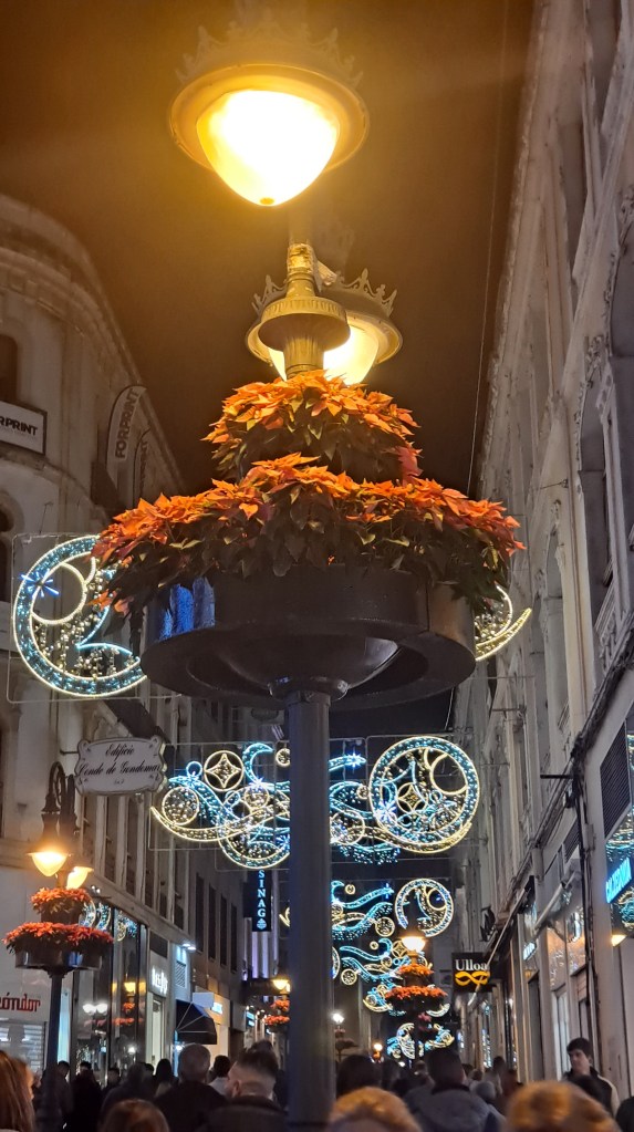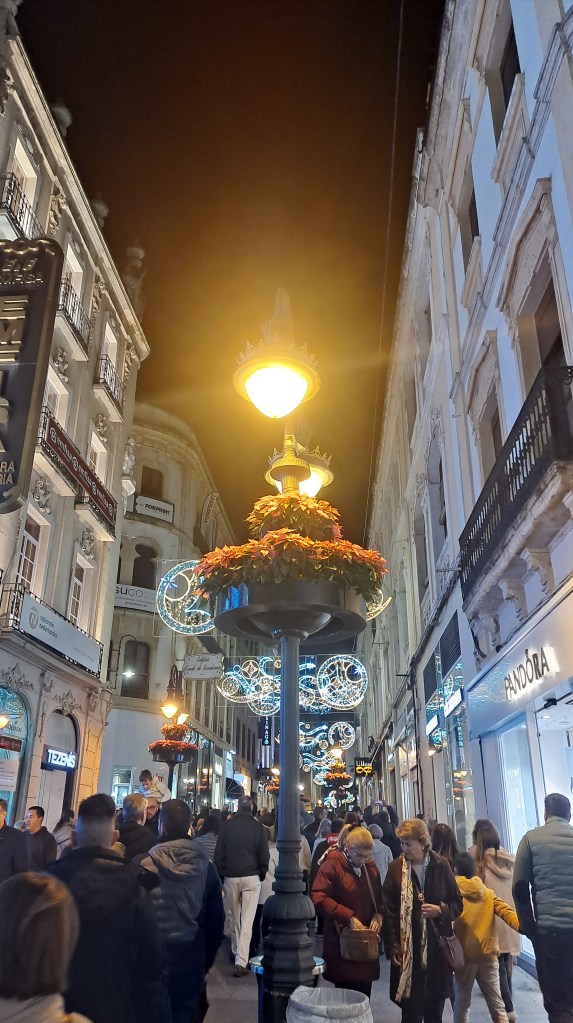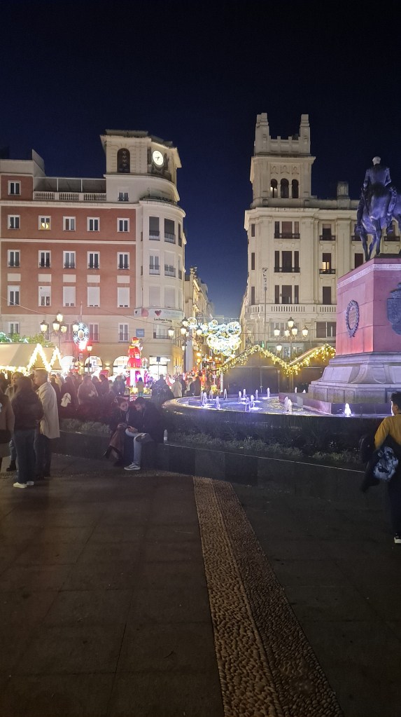 La calle principal con los puestos y la ferias, donde no se podía ni caminar, algo que nos agobió un poco, entramos en un Corte Inglés donde nos compramos un par de abrigos carísimos, obvimante se nos hizo de noche disfrutando del paseo.