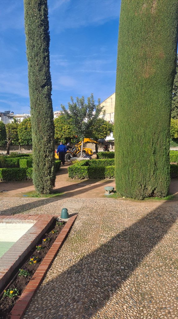 Empezamos por el Alcázar de día, ya lo habíamos bordeado entero de noche, así que, encontramos que por las horas y por remodelaciones sólo podíamos ver la parte de los jardines del Alcázar de los Reyes Cristianos de Córdoba.