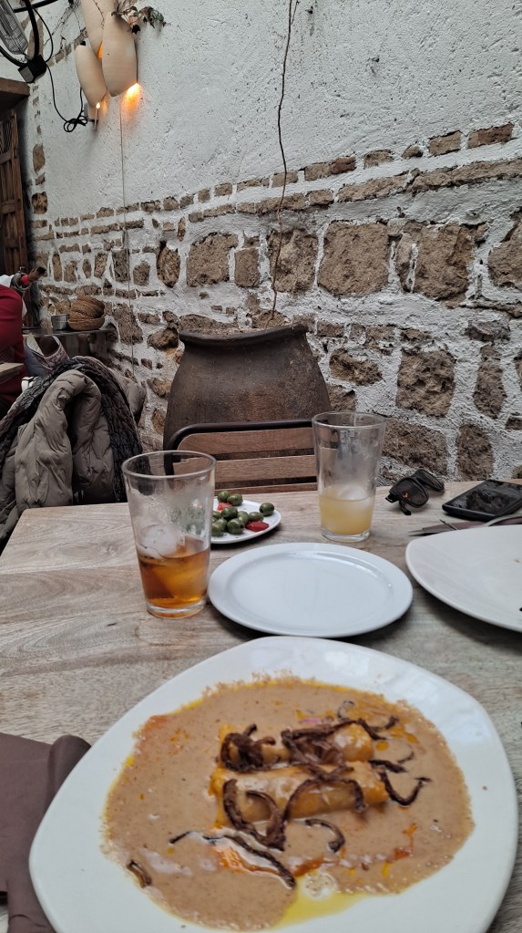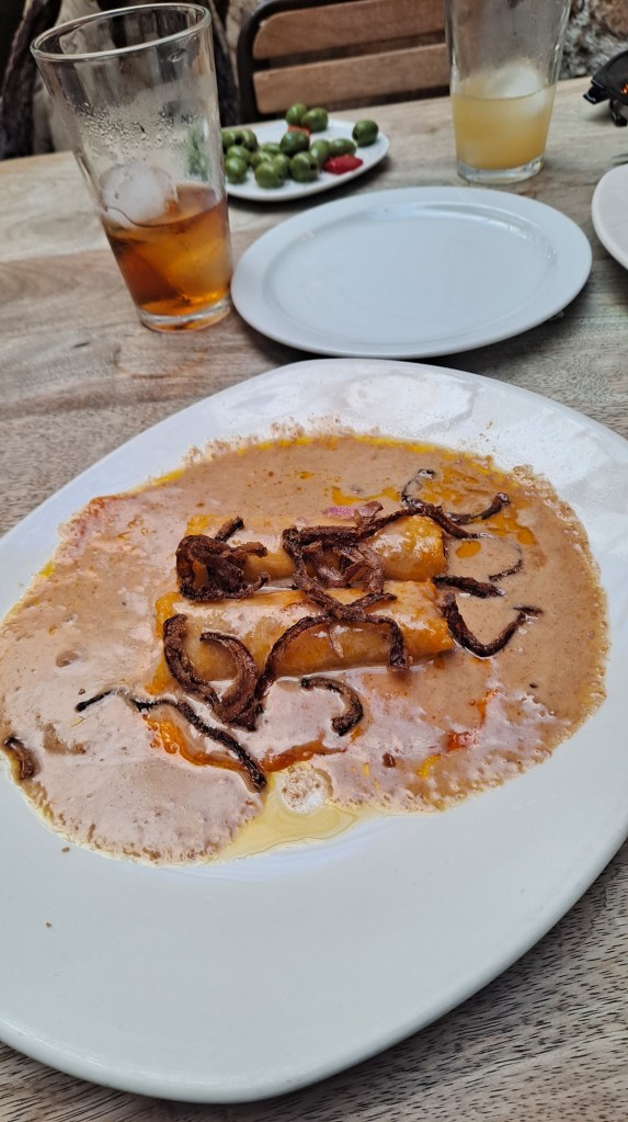 Así que quisimos ir a comer algo, ya eran las 15:00 y ya teníamos hambre, encontramos cerca un rinconcito de lo más encantador, donde comimos cosas que no solemos pedir normalmente, y que son un poco típicas de ahí, según miramos en internet antes de ir claro.