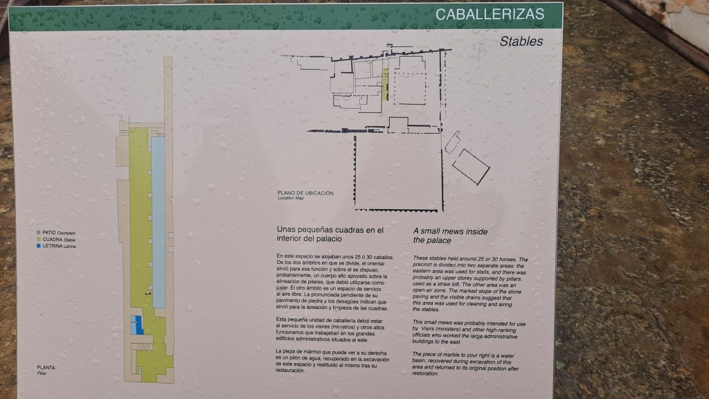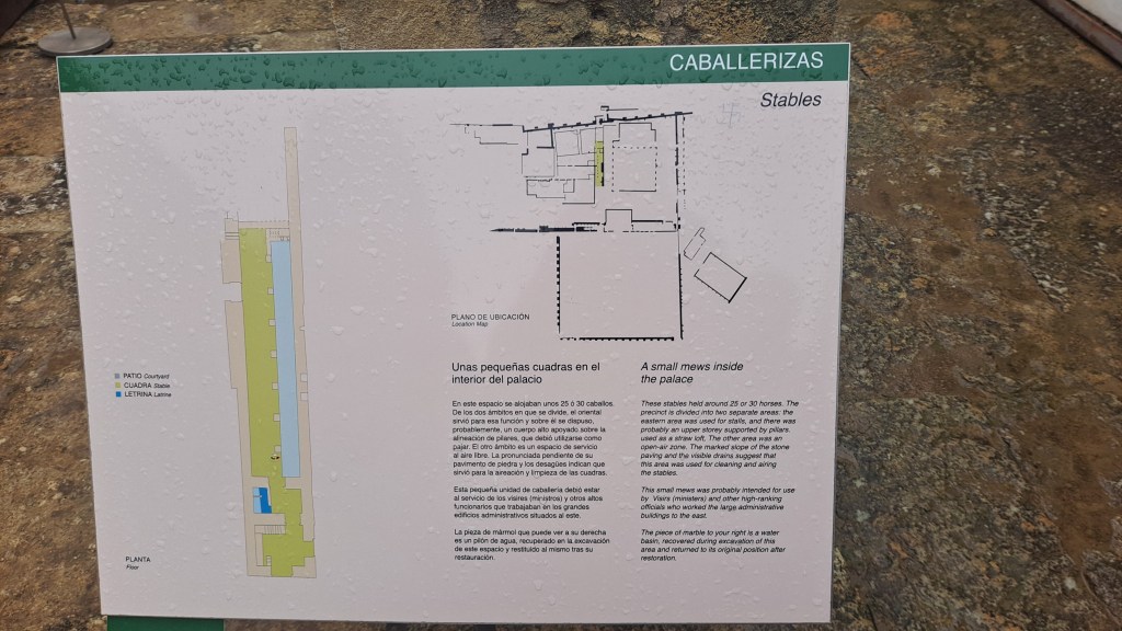 Gran Pórtico y Plaza de Armas, donde la gran arquería fue concebida para impresionar; también hay a Mezquita, que era la principal de la ciudad, o las Caballerizas, que son unas pequeñas cuadras en el interior del palacio, donde se alojaban unos 25 o 30 caballos.